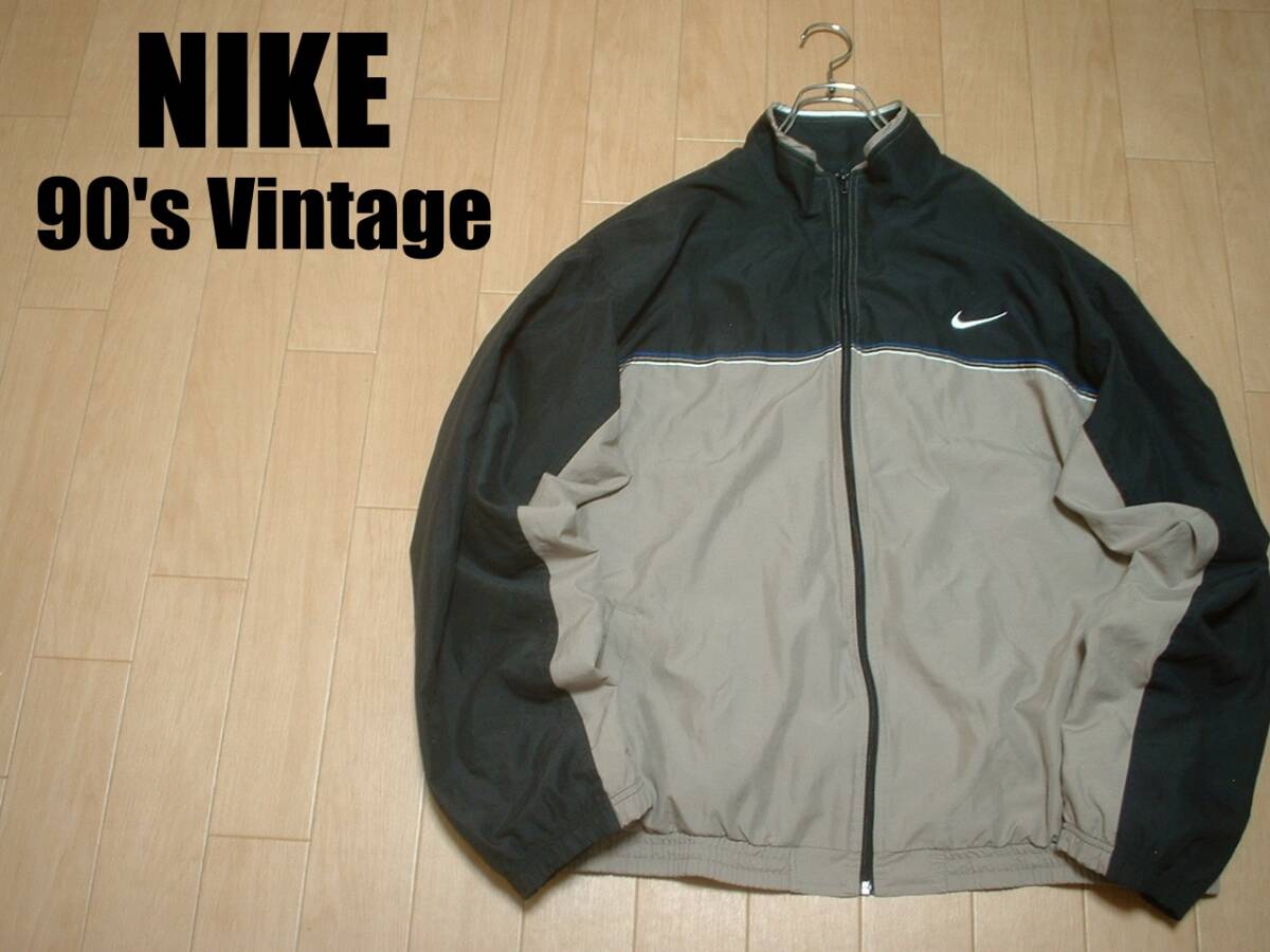 - 90sビンテージUSA製NIKEワンポイントスウッシュ刺繍ナイロンジャケット米国製XL正規ナイキ銀タグウインドトラックMADE IN USAジャージ