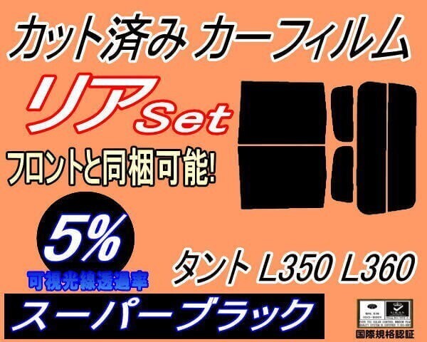 - カーフィルム スーパーブラック カット済み リアセット タント L350 L360 (b) スモーク L350S L360S タントカスタム リアセット リヤセット
