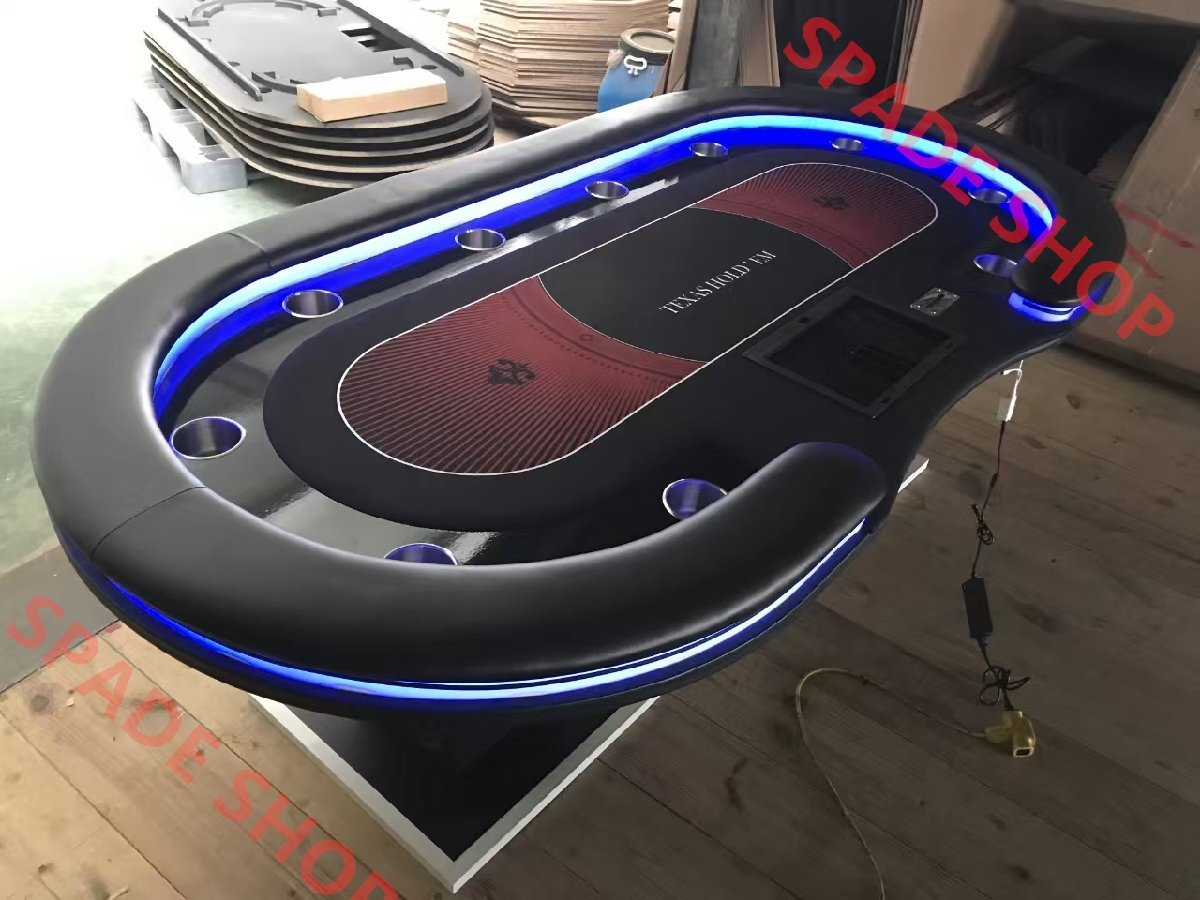 - 超豪華 10人用 ポーカーテーブル 楕円形 超高安定性ベース ホールデムサイコロ カジノ テキサスホールデム カップホルダー付き213*106cm