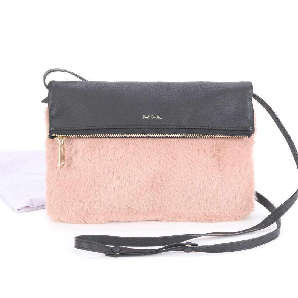 - 1円■極美品■ポールスミス■フォルドオーバー ファー レザー ショルダー ロング ウォレット 長財布 斜め掛け レディース EEE CS23-7
