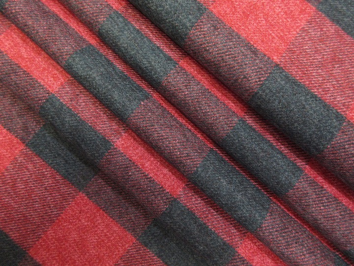 > 綿100 先染 格子 起毛 ワンピース シャツ 中厚 巾145cm 長3m 赤系 [a037]