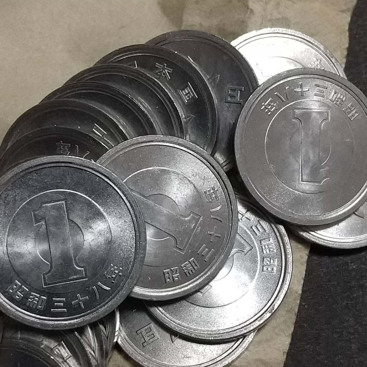 - 現行1円アルミ貨幣 昭和38年完全未使用50枚ロール