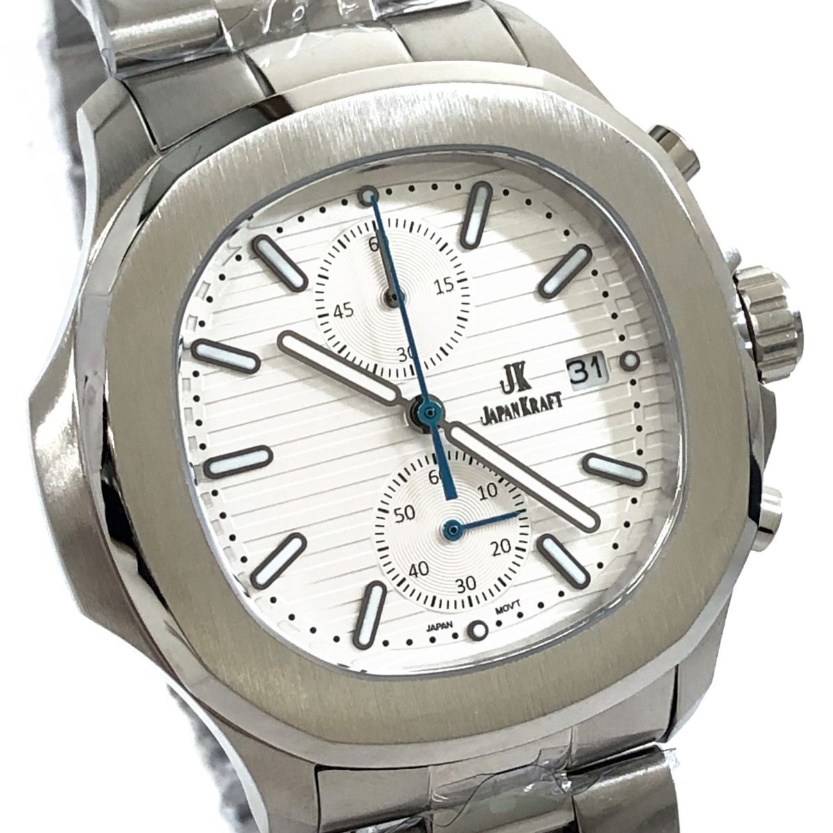 > 新品 JAPAN KRAFT ジャパンクラフト 腕時計 JK-003WH クオーツ クロノグラフ アナログ カレンダー ホワイト シルバー コレクション