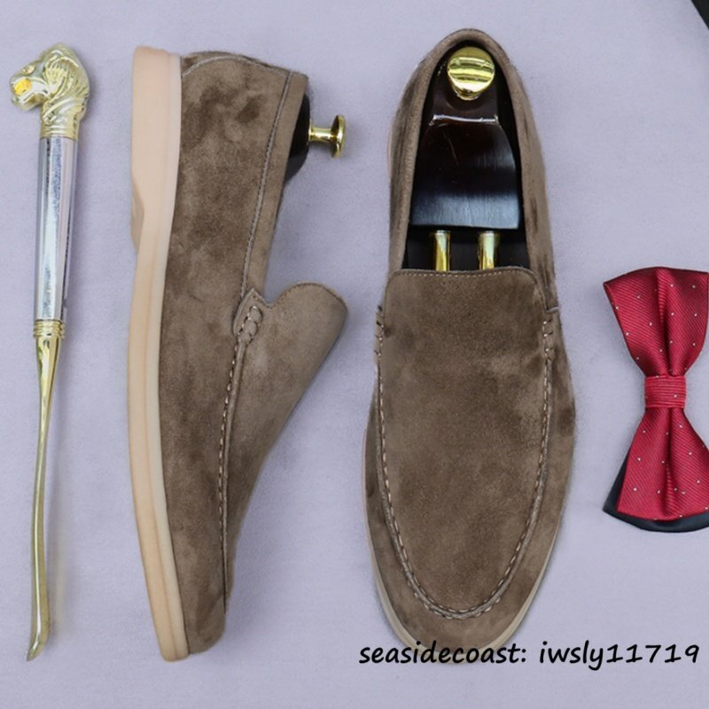 - 最高級★ビジネスシューズ 本革 メンズ ドライビングシューズ 職人手作り ローファー スリッポン スエード革 紳士靴 革靴 珈琲色 26.5cm