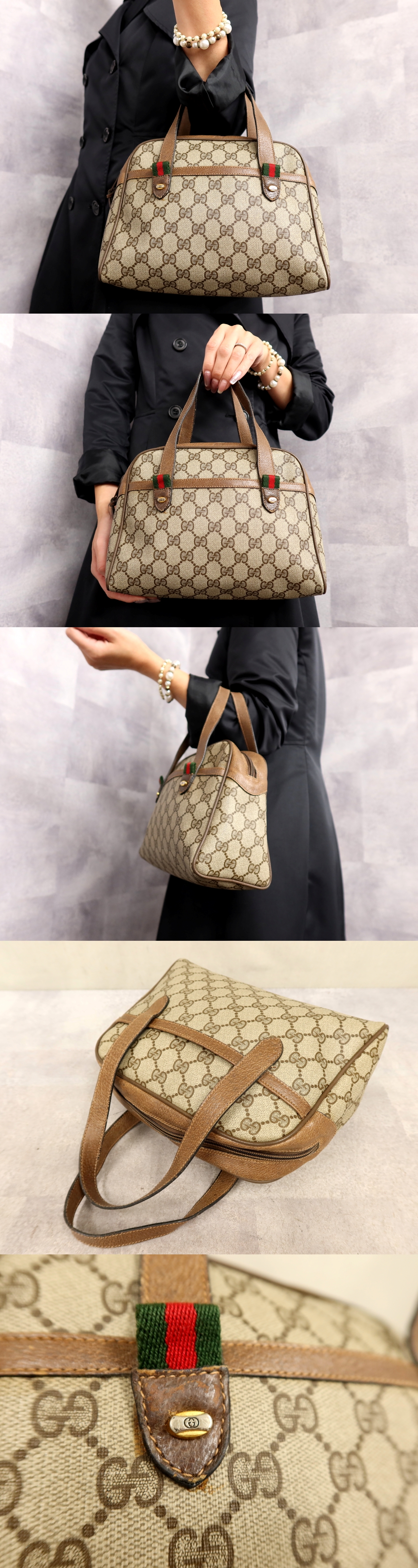 > ●超美品●GUCCI オールド グッチ●シェリー●GGスプリーム●PVC カーフ レザー 本革●ハンド バッグ●ブラウン系●ヴィンテージ●Js62028