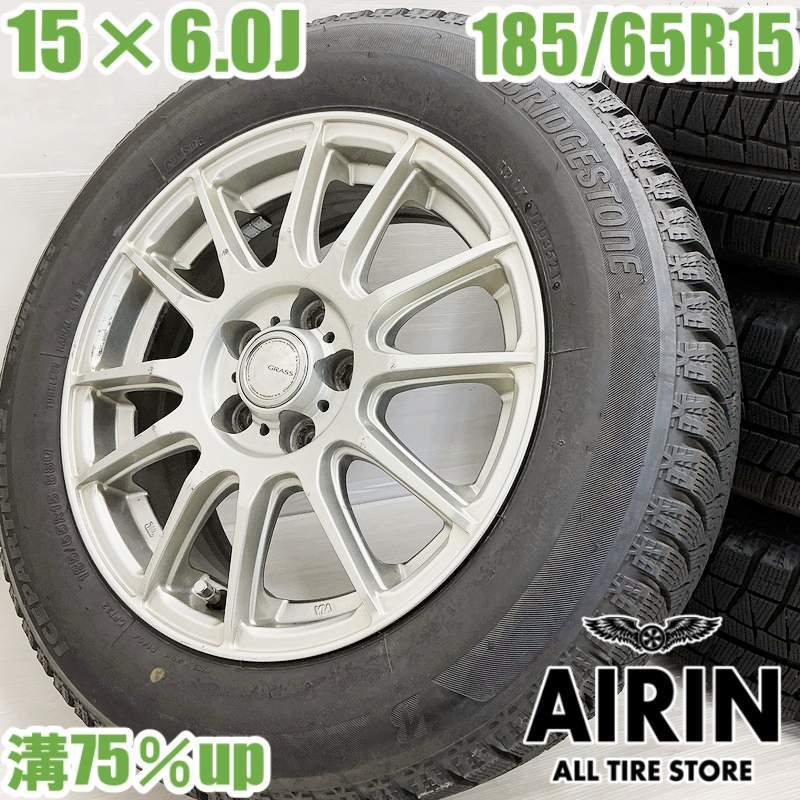 | 【中古】アルミホイール・タイヤ付 GRASS BRIDGESTONE ICE PARTNER 2 185/65R15 4本セット