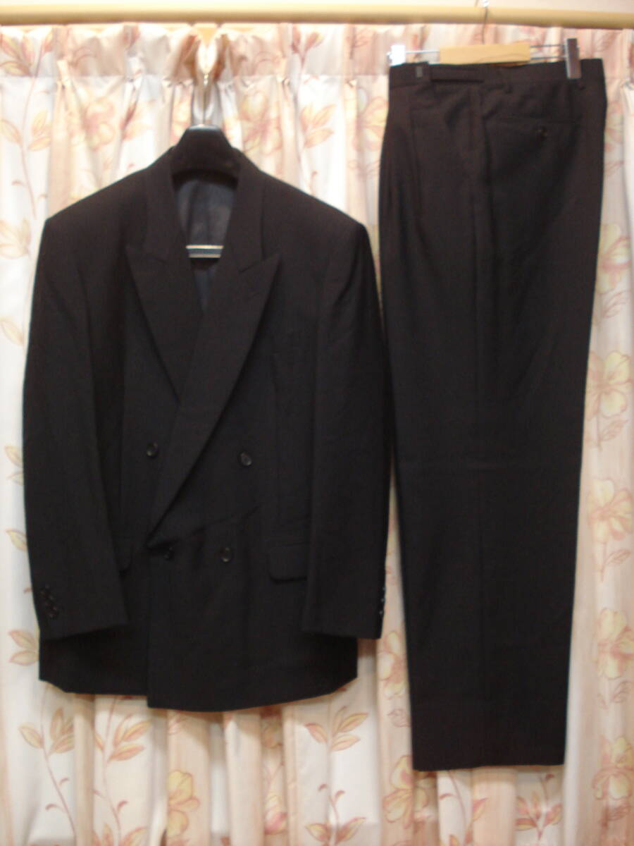 > 送料無料!美品!★秋冬春もの!A6サイズ!ウェスト77cm~92cmアジャスター調節可能!黒色!高級フォーマルダブルスーツ!毛:100%!