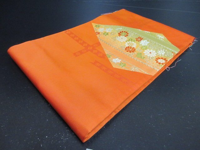 - 1円 良品 名古屋帯 正絹 アンティーク 未使用 和装 和服 草花 亀甲 お洒落 高級【夢職】★