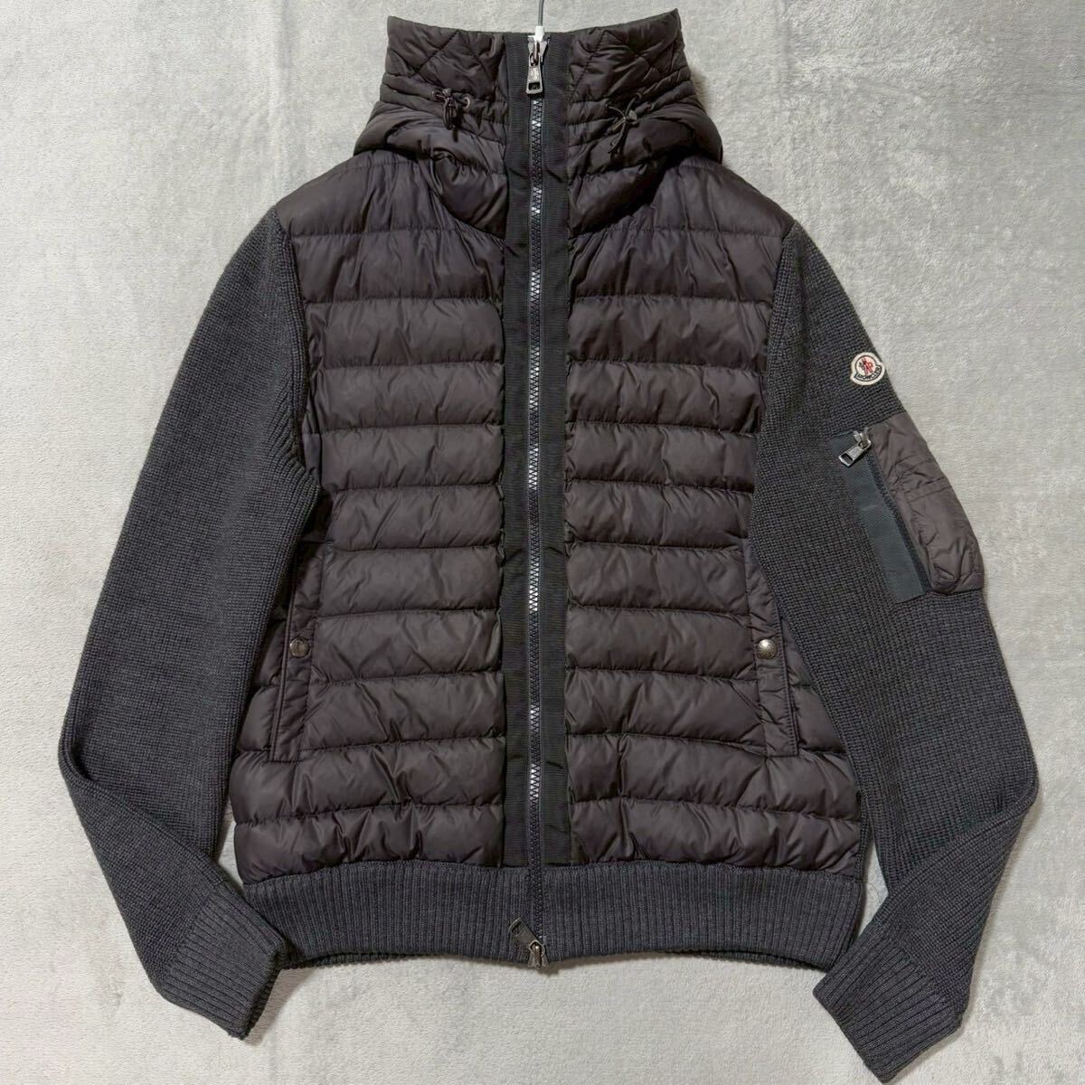 > 美品/Lサイズ★MONCLER MAGLIONE TRICOT CARDIGAN モンクレール マグリア カーディガン ハイブリッド ダウンジャケット 切替 ニット グレー