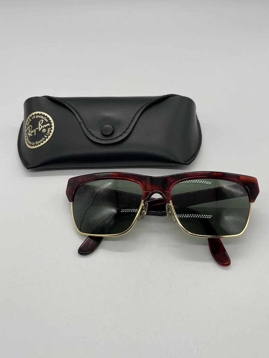 > 【1円スタート】Ray-Ban レイバン B&L期 Clubmaster系 ブロー サングラス べっ甲調/ゴールド グリーンレンズ ケース付 W0923刻印
