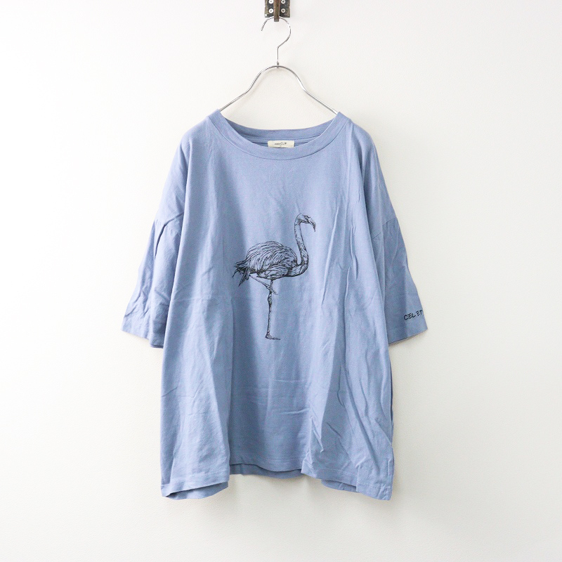 > 2025SS 今季 スタジオクリップ studio CLIP フラミンゴプリント 半袖カットソー L‖ブルー系 トップス プルオーバー【2400014672985】