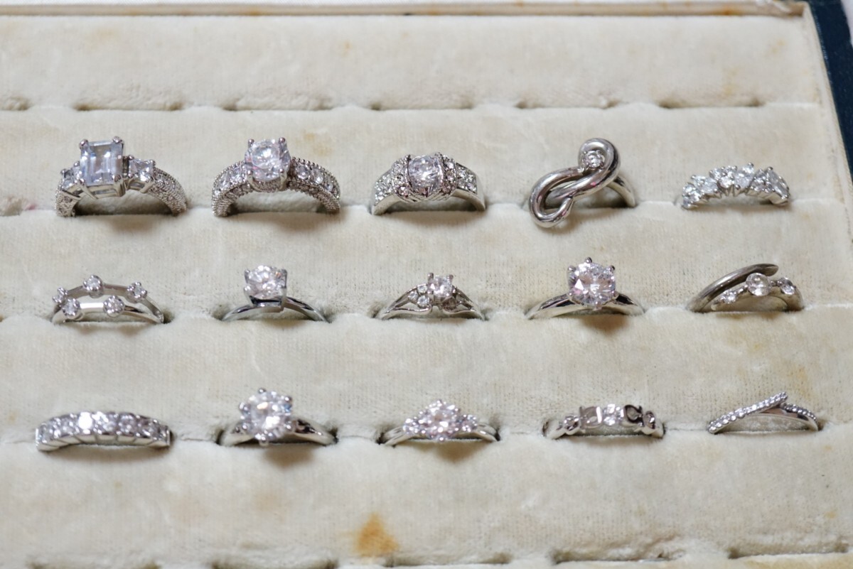 > C2048 キュービックジルコニア CZ ジルコニア リング 指輪 15点 ヴィンテージ アクセサリー 大量 まとめて おまとめ まとめ売り SILVER含む