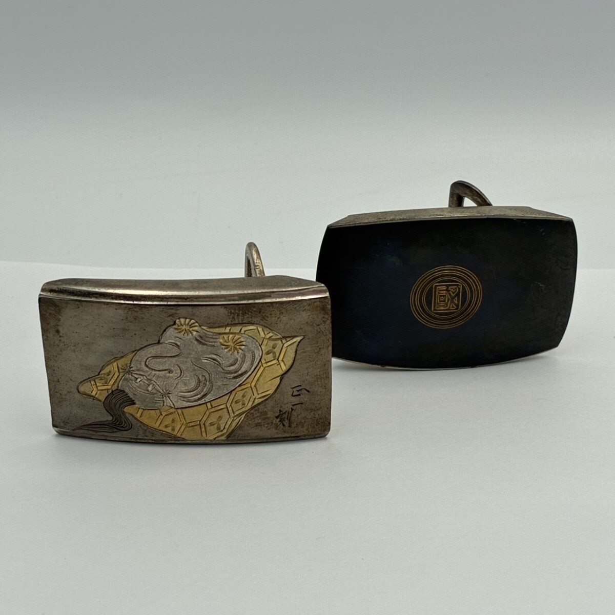 - 1円スタート バックル 2点 まとめ 北國銀行十周年記念 銀製 ベルトバックル 精勤賞 silver 刻印あり 彫金技術 銀 金 TK1101-う