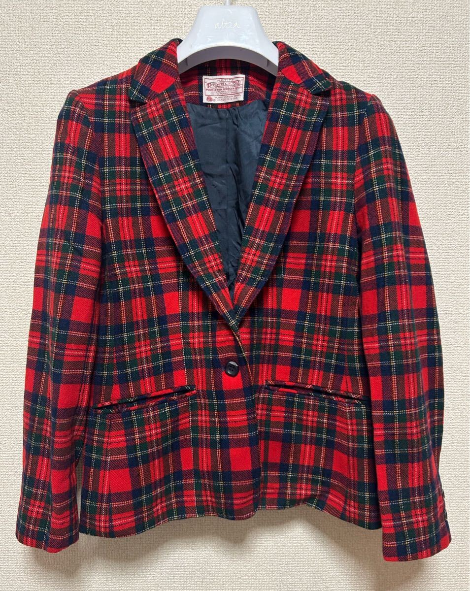 > 70's PENDLETON ペンドルトン タータンチェック テーラードジャケット レディース USA製 赤 USAヴィンテージ Vintage jacket