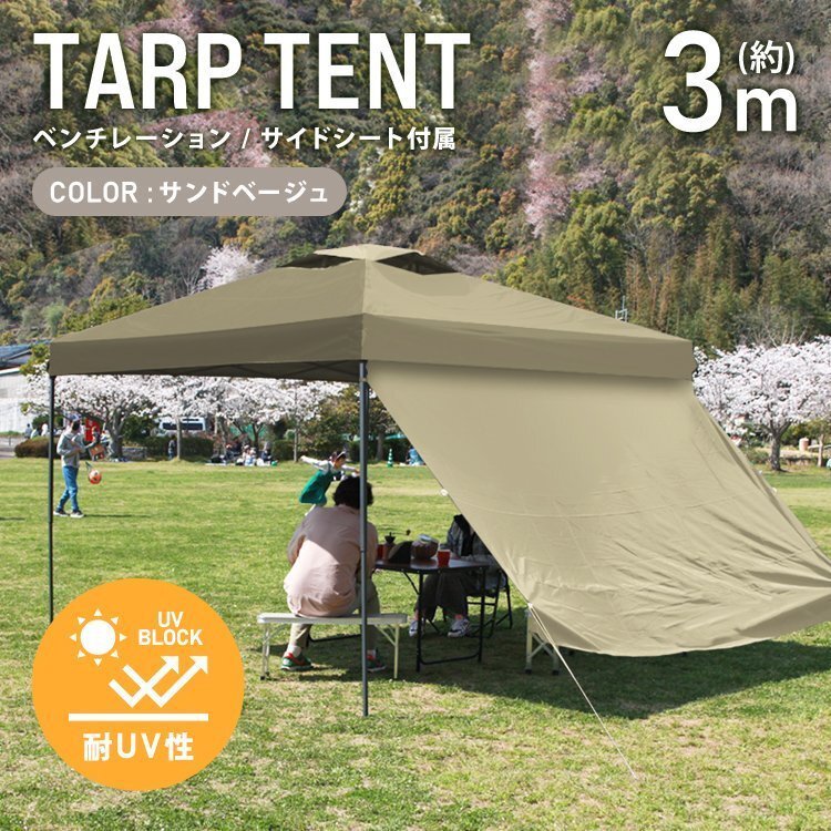 > テント タープテント ワンタッチ 3m×3m サイドシート ベンチレーション付属 耐水 日よけ 日除け サンシェード アウトドア レジャー用品