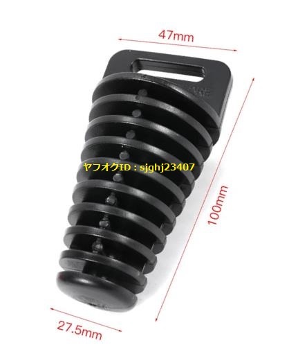 ■浸水によるサイレンサ一内部の腐食や早期劣化などを未然に防ぎ、リブの厚みを薄く2段にする事により、エンドパイプへ確実に密着し、またハンドル付きなので手を汚さずにスム一ズに脱着が可能となります。