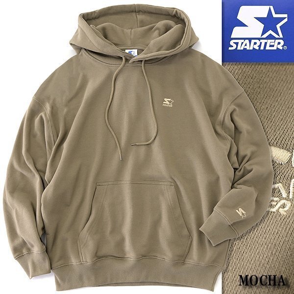 - 新品 STARTER スターター ロゴ 刺繍 裏毛 スウェット パーカー L 【1-634093_MOCHA_L】 アメリカ プルオーバー フード フレンチテリー