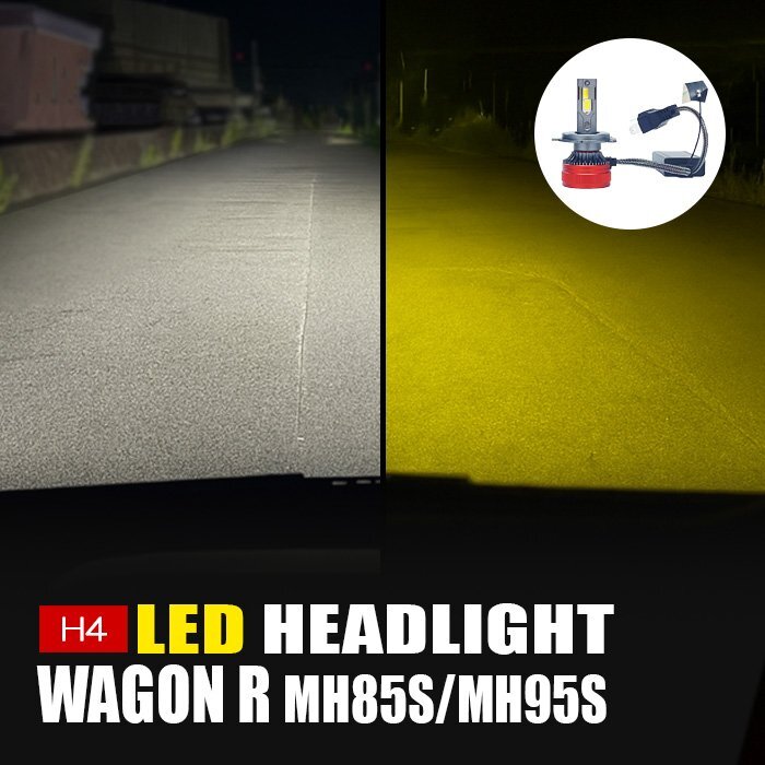- ワゴンR MH85S MH95S LED ヘッドライト H4 ロービーム 3000K 8000K カメレオン 色温度調整 アプリ 連動 高輝度 イエロー ホワイト LEDヘッ