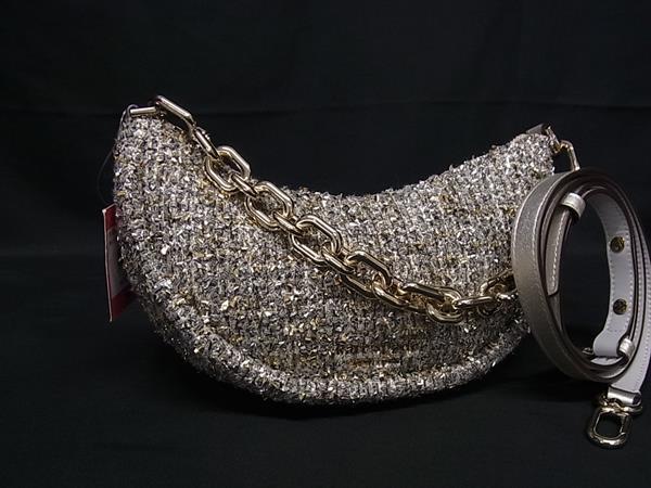 > 1円■新品同様■ kate spade ケイトスペード K5516 スマイル スモール ツイード クロスボディ ショルダー ハンドバッグ シルバー系 FU4835