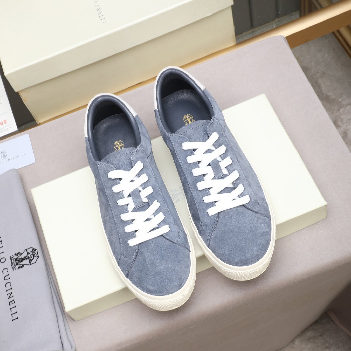 > グレー27.0cm★送料無料【新品】★ブルネロクチネリ★メンズスエードレザー スニーカー, 上質牛革アッパー, ラバーソール, カジュアル