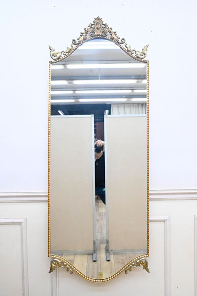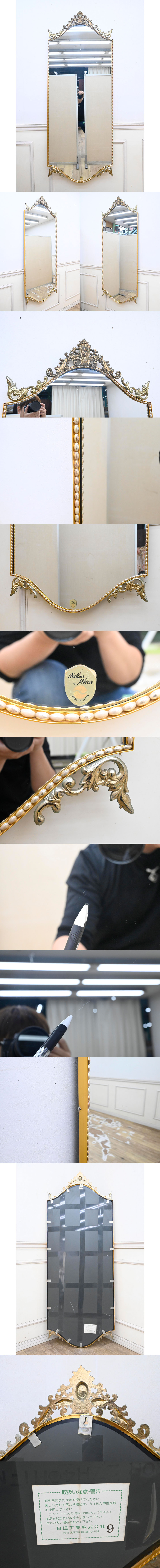 - IH11 日本製 メタル製フレーム ゴールド 一面鏡 姿見 壁掛けミラー 全身鏡