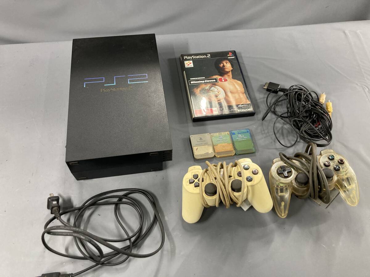 > ソニー SONY コナミ HORI PS2SCPH-30000 プレイステーション2 ブラック 本体 コントローラー ソフトセット まとめ売り 動作未確認