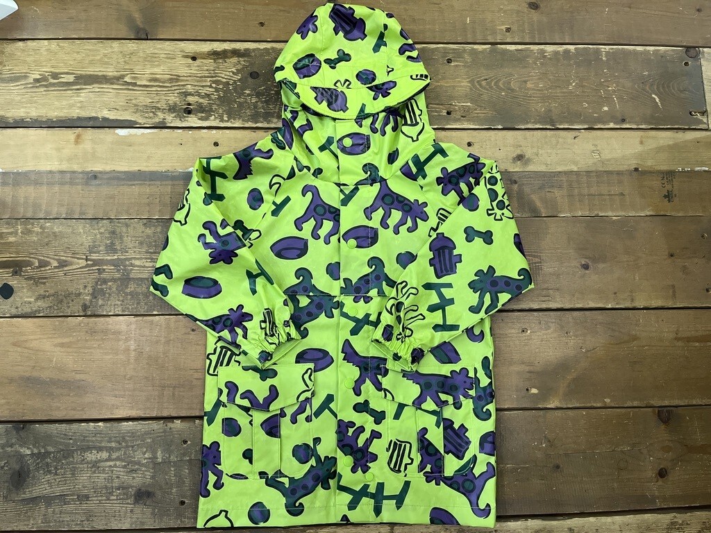 - キッズ L.L.BEAN エルエルビーン レインコート カッパ グリーン パープル 総柄 XXS P.V.C NYLON ユニセックス USED