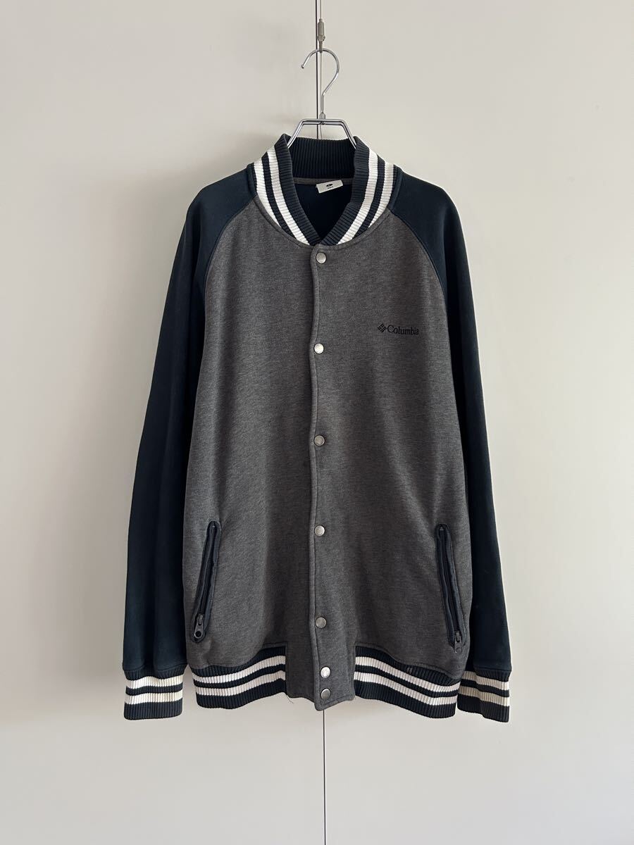 > コロンビア Columbia スウェットスタジャン L グレー×ネイビー スナップボタン 裏起毛 カジュアル アウトドア 古着