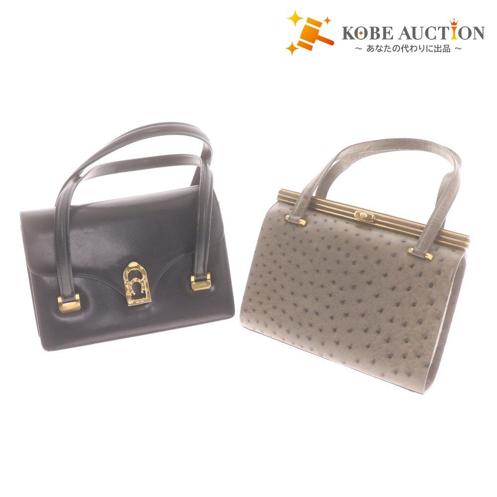 > ■ バルトロメイ ロレンツィ トート ハンドバッグ 2点セット まとめ売り 鞄 オーストリッチ 総柄 レディース ネイビー系 二つ折り財布付き
