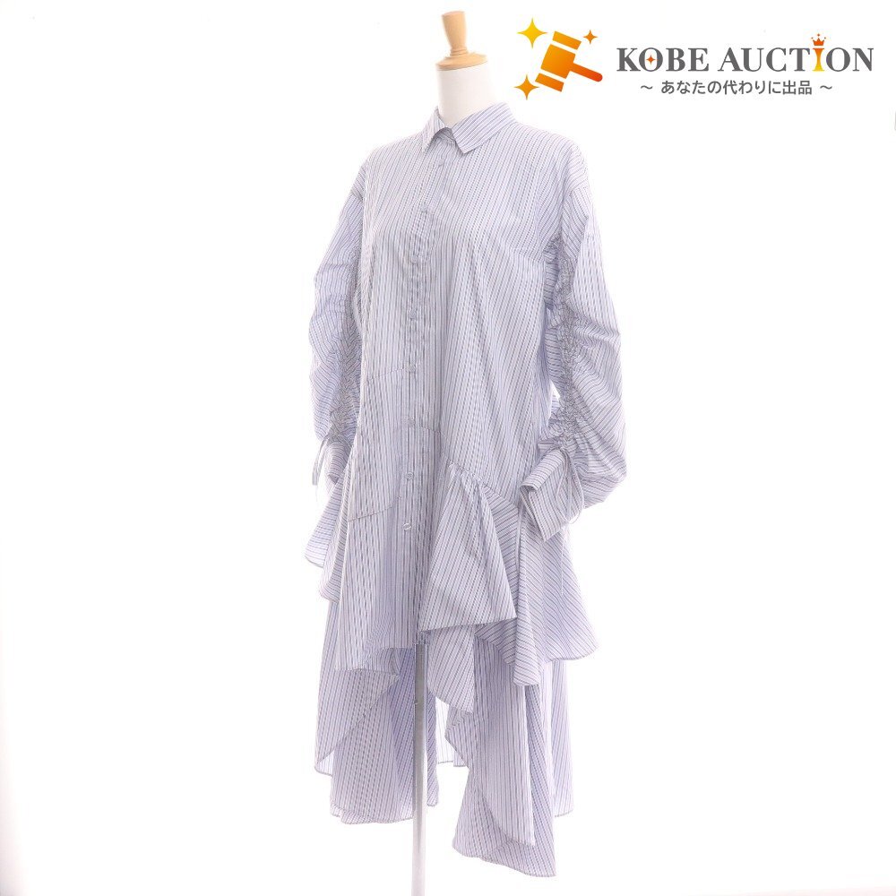 > ■ SNIDEL スナイデル ロングワンピース 長袖 ジャケット トップス アウター マキシ丈 フリル 襟 ストライプ柄 レディース 0 ライトブルー