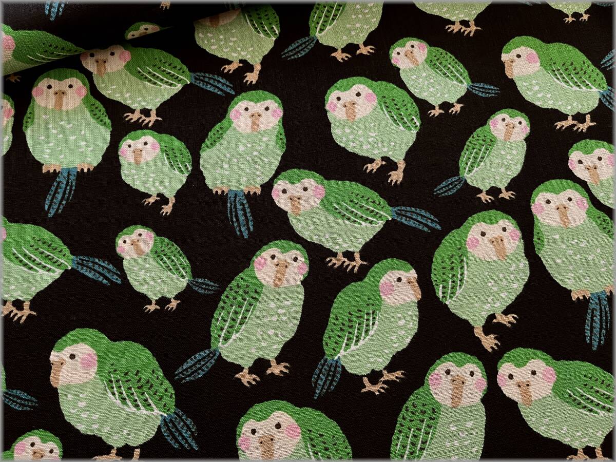 - mets★5m*リネンライクスラブ*カカポ鳥*black*コットン生地A5