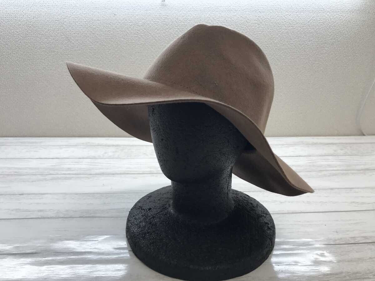 > アーヴェーヴェー a.v.v クラシック エレガント つば広ソフト帽 中折れ フェルト ハット 帽子 レディース ウール100% 頭周り56cm 茶色