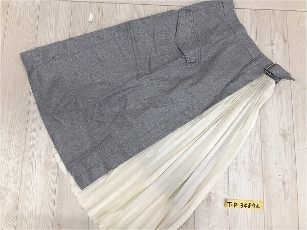 - Untit レディース プリーツ切替 ロングスカート 2 グレー白