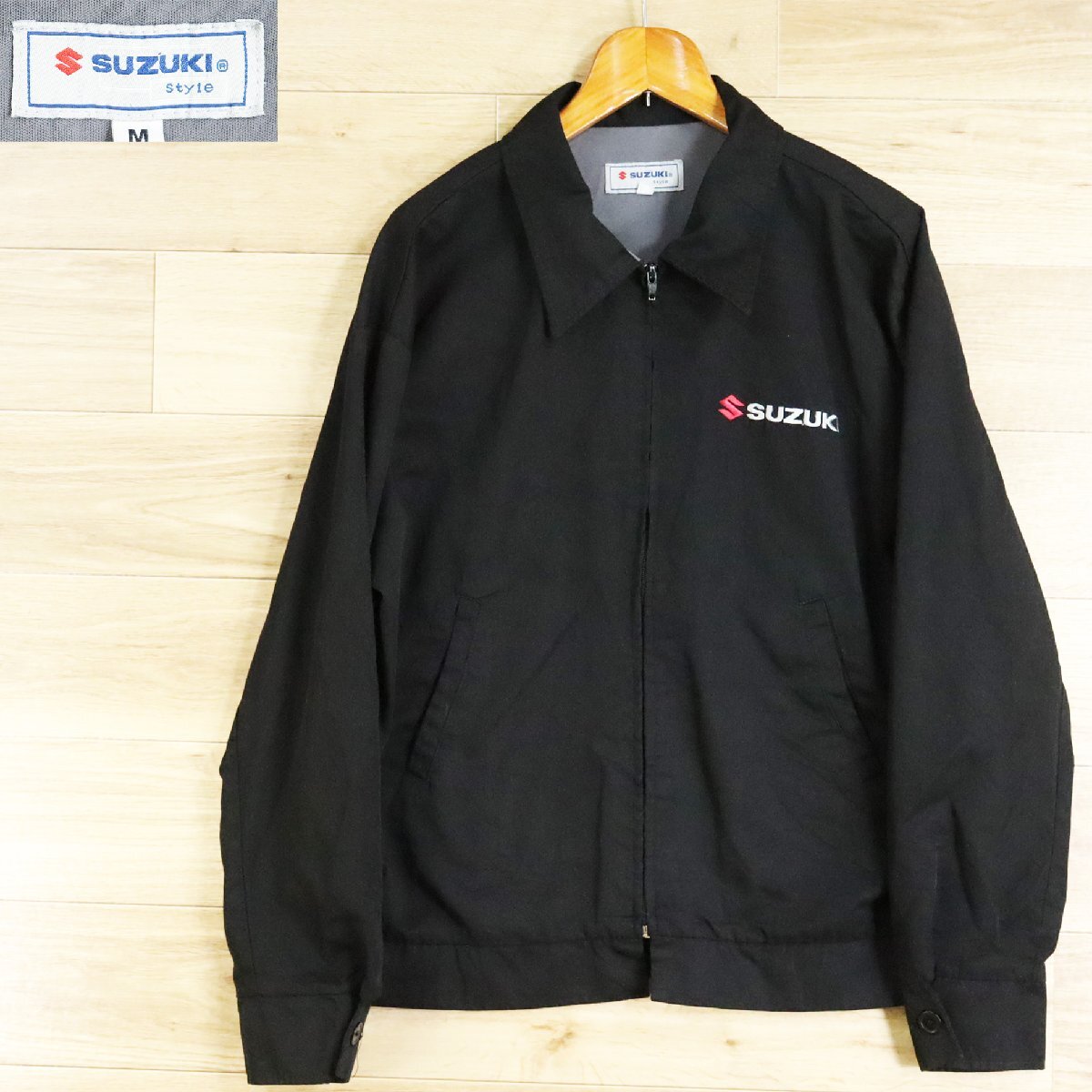 > L1K/O4.8-1 SUZUKI スズキ ワークジャケット 企業ロゴ ジップアップジャケット ブルゾン ジャンパー 刺繍 ブラック M