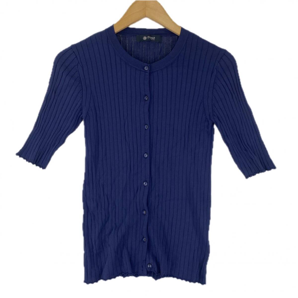 - nano universe ナノユニバース 半袖 リブニット カーディガン size38/ネイビー ゆうパケットOK