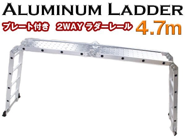 - 【新品即納】[プレート付き]折り畳み アルミ製 多機能 梯子 脚立 5.7m プレート付 足場 伸縮 ラダーレール はしご 倉庫 大掃除 洗車