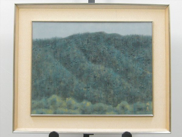 - 【心庵】額装 宇田裕彦「洛北の山」日本画 金落款 10号 共シール 真作 日展特選 無鑑査 KB026