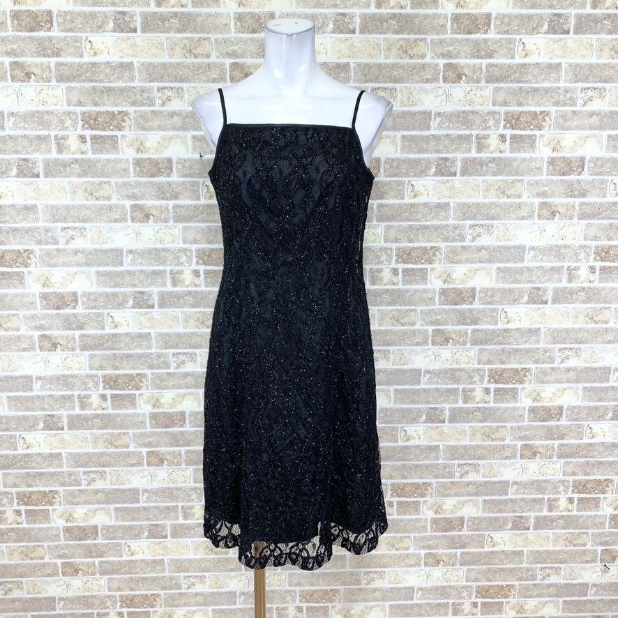 - 1円 ドレス キャミワンピース 7AR 黒系柄 カラードレス キャバドレ 発表会 イベント 中古15931