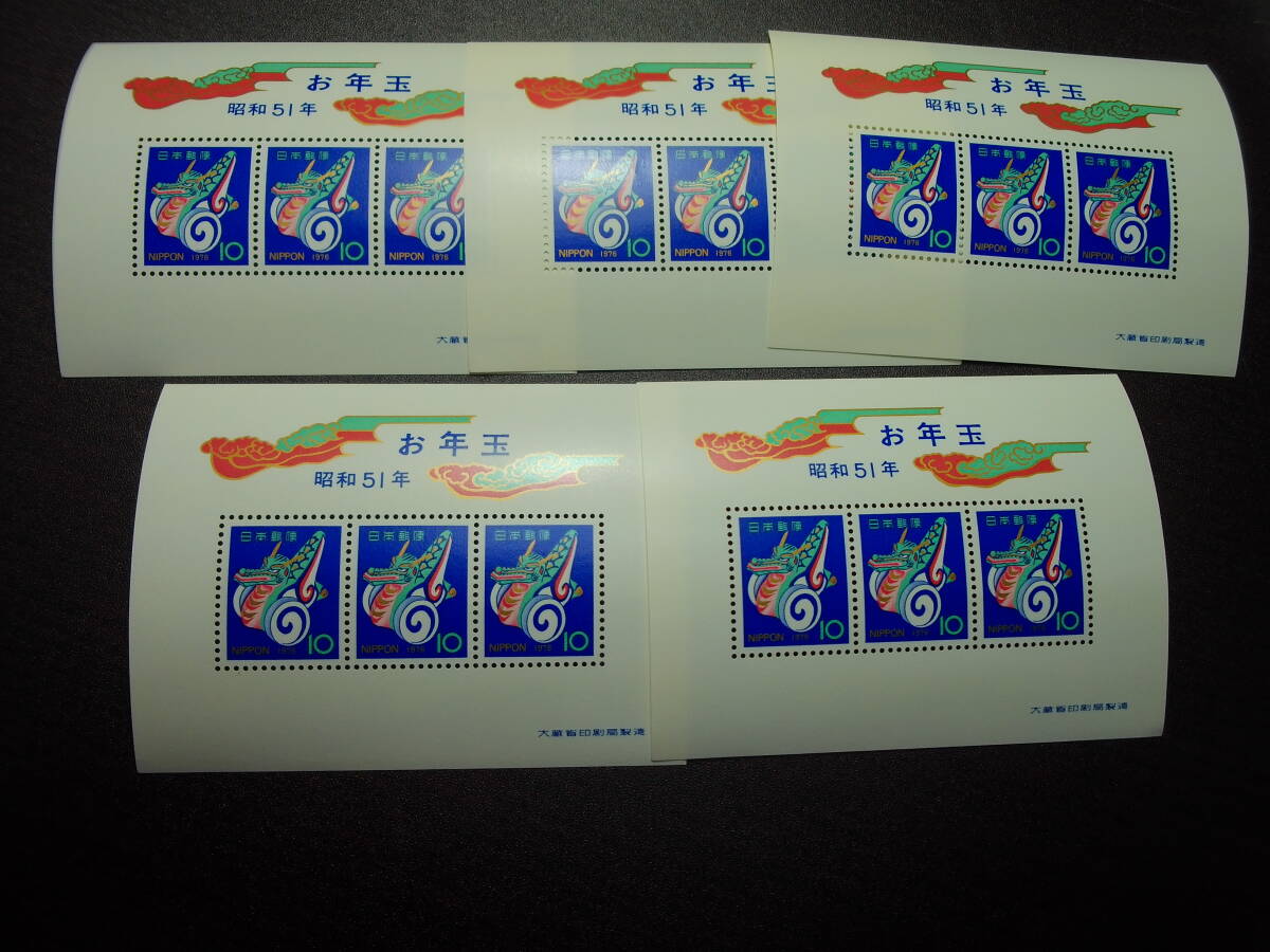 - 年賀切手 たつぐるま 5シート1セット 極美品 カタログ値750円 昭和51年用