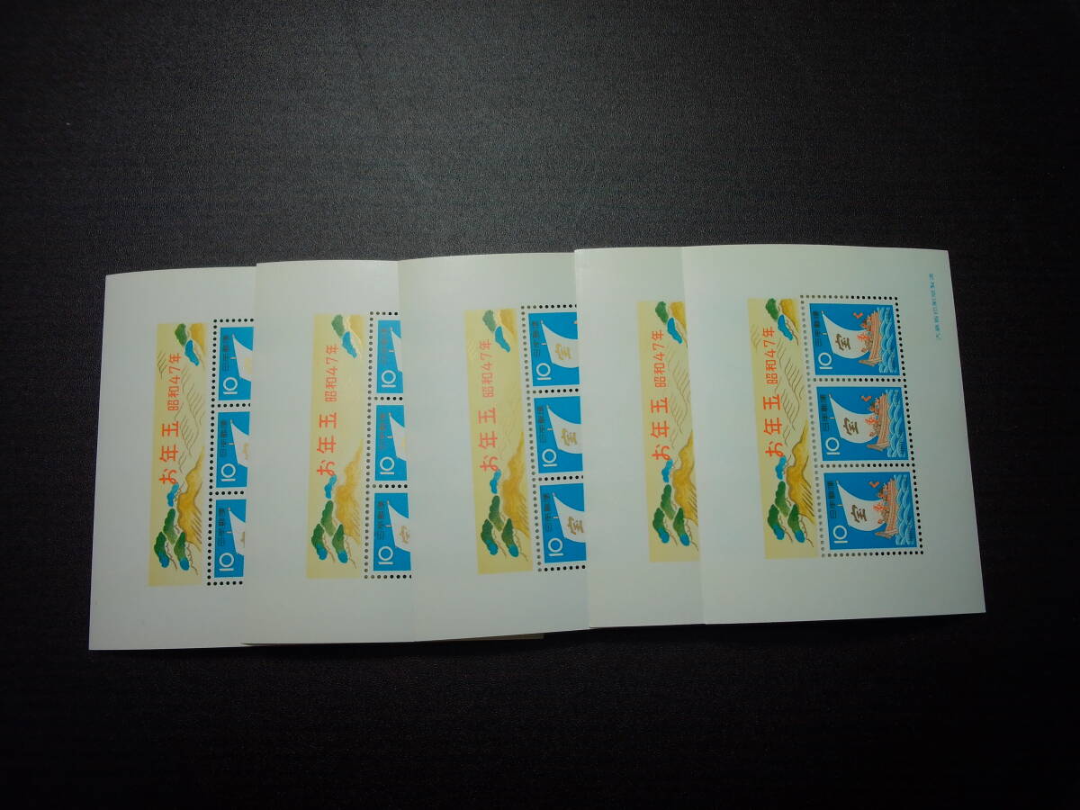 - 年賀切手 宝船 5シート1セット 極美品 カタログ値1000円 昭和47年用
