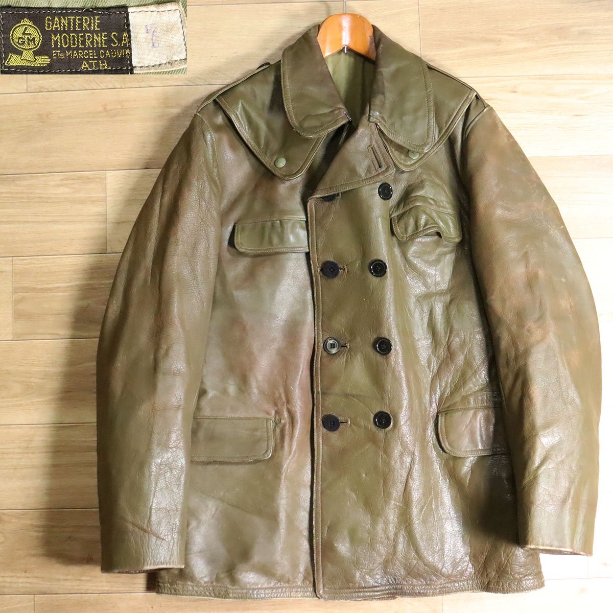 - Y7K/Y6.2-1 50s~ ユーロヴィンテージ ベルギー軍 ポリスマンジャケット レザーカーコート 本革 レザージャケット レザーコート