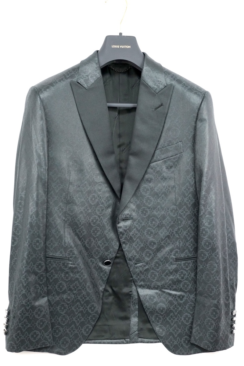 - LOUIS VUITTON ルイヴィトン モノグラム ジャガード 総柄 ウール タキシード テーラージャケット 50サイズ ブラック RM222F IQ7 HNFJ5E