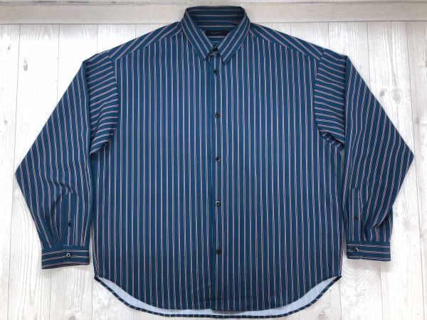 > レイジブルー RAGEBLUE 英国トラッド ストリート マルチストライプ 長袖シャツ メンズ オーバーシルエット ビッグサイズ L 青赤
