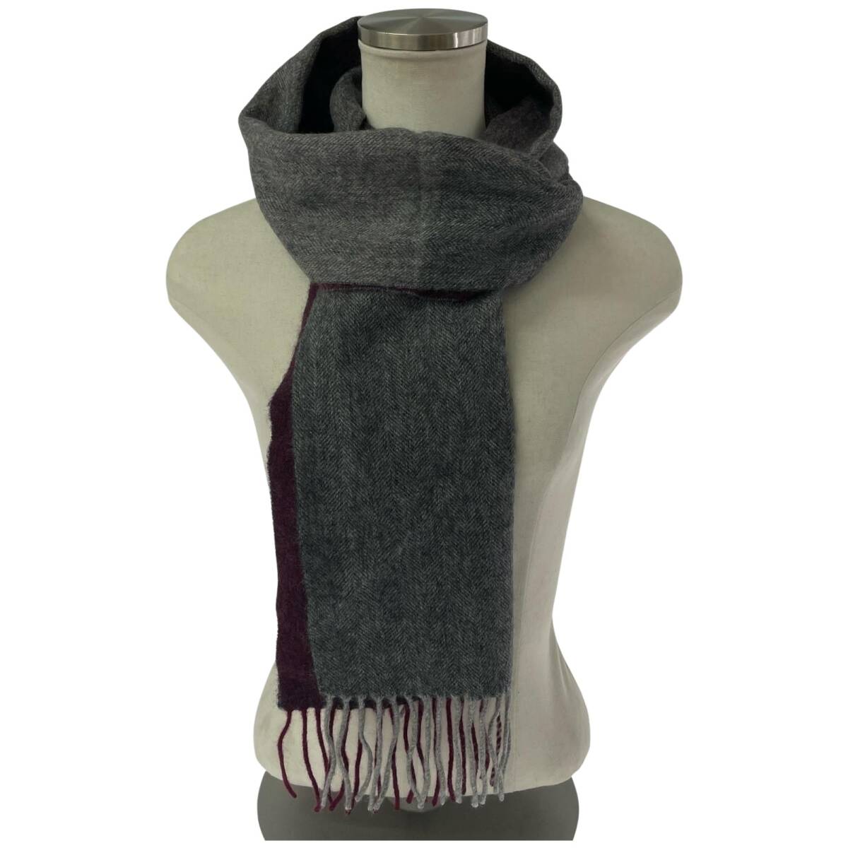 - TAKEO KIKUCHI タケオキクチ マフラー/グレー×ワインレッド ゆうパケットOK