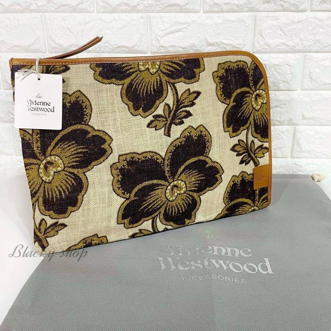 > ヴィヴィアン ウエストウッド クラッチ バッグ ダンシング フラワー 未使用 タグ付き きなり オーブ ロゴ 花柄 麻 レザー ブリーフ ケース