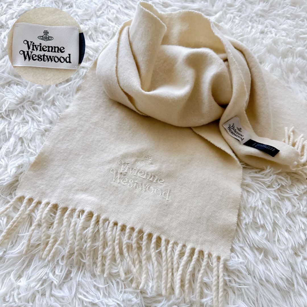 - Vivienne Westwood ヴィヴィアンウエストウッド マフラー ストール オーブ刺繍入り イタリア製 ウール100% アイボリー オフホワイト