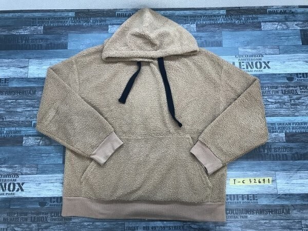 - ZARA ザラ メンズ もこもこ ひも&ポケット付き フーディー パーカー L 薄茶
