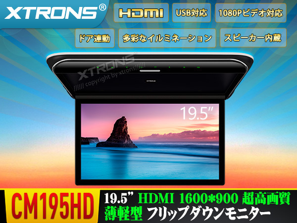 - CM195HD△XTRONS 19.5インチ大画面 フリップダウンモニター 1600*900高画質 HDMI対応 スピーカー付 1080Pビデオ ドア連動 USB 1年保証