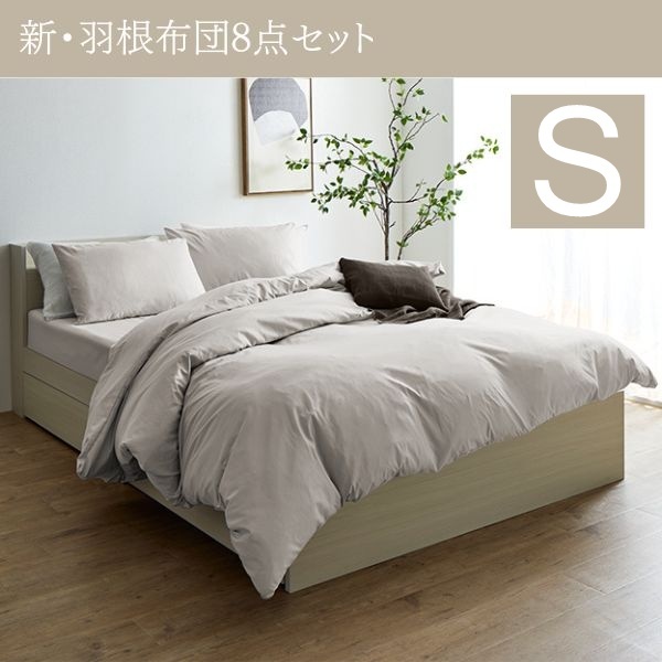 - 3年保証 新・羽根布団8点セット ベッドタイプ シングル ソフトグレー
