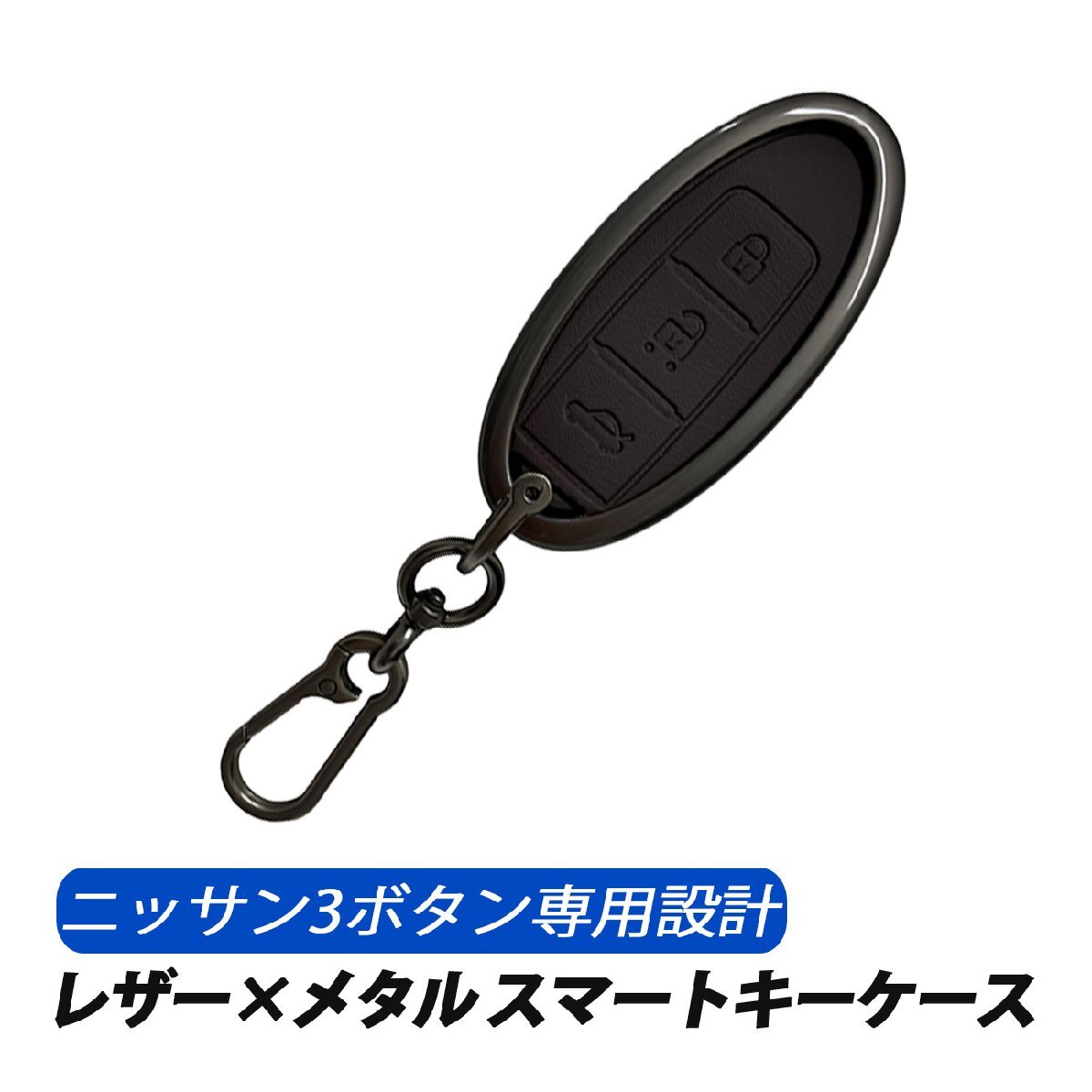 - スマートキーケース キーカバー 日産 3ボタン レザー メタル 専用設計 キーケース ブラウン